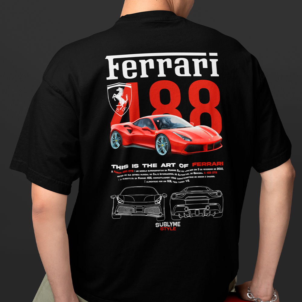 Um produto pertencente a nossa coleção de carros, na subcoleção da Ferrari. Com uma estampa grande e detalhada e material de extrema qualidade. Perfeito para quem procura estilo e é um grande amante de carros.